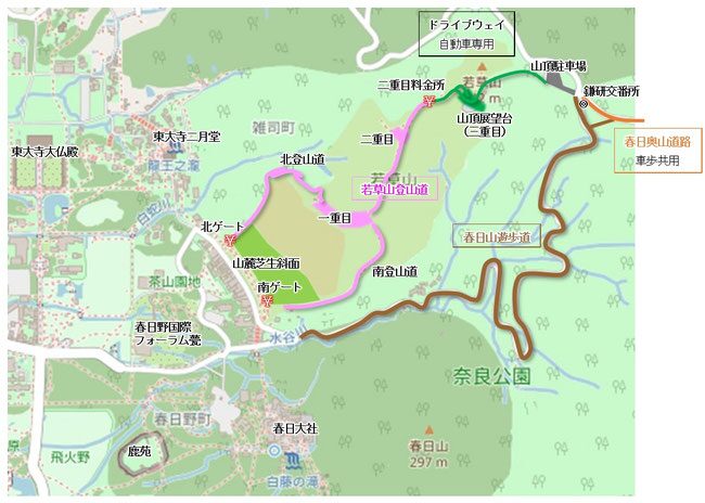 | 🗻 登山口 | 南ゲート(春日大社奥・料金所あり) |